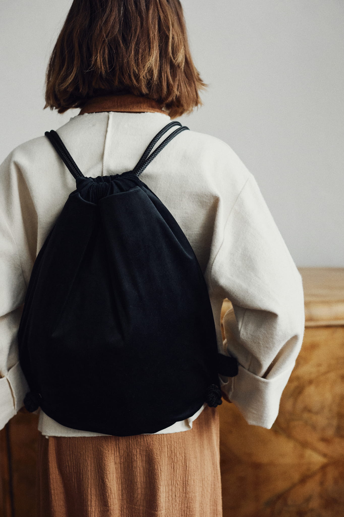 Niezwykły plecak w formie worka. W jedynym słusznym kolorze - czarnym. Pasuje do wielu stylizacji.